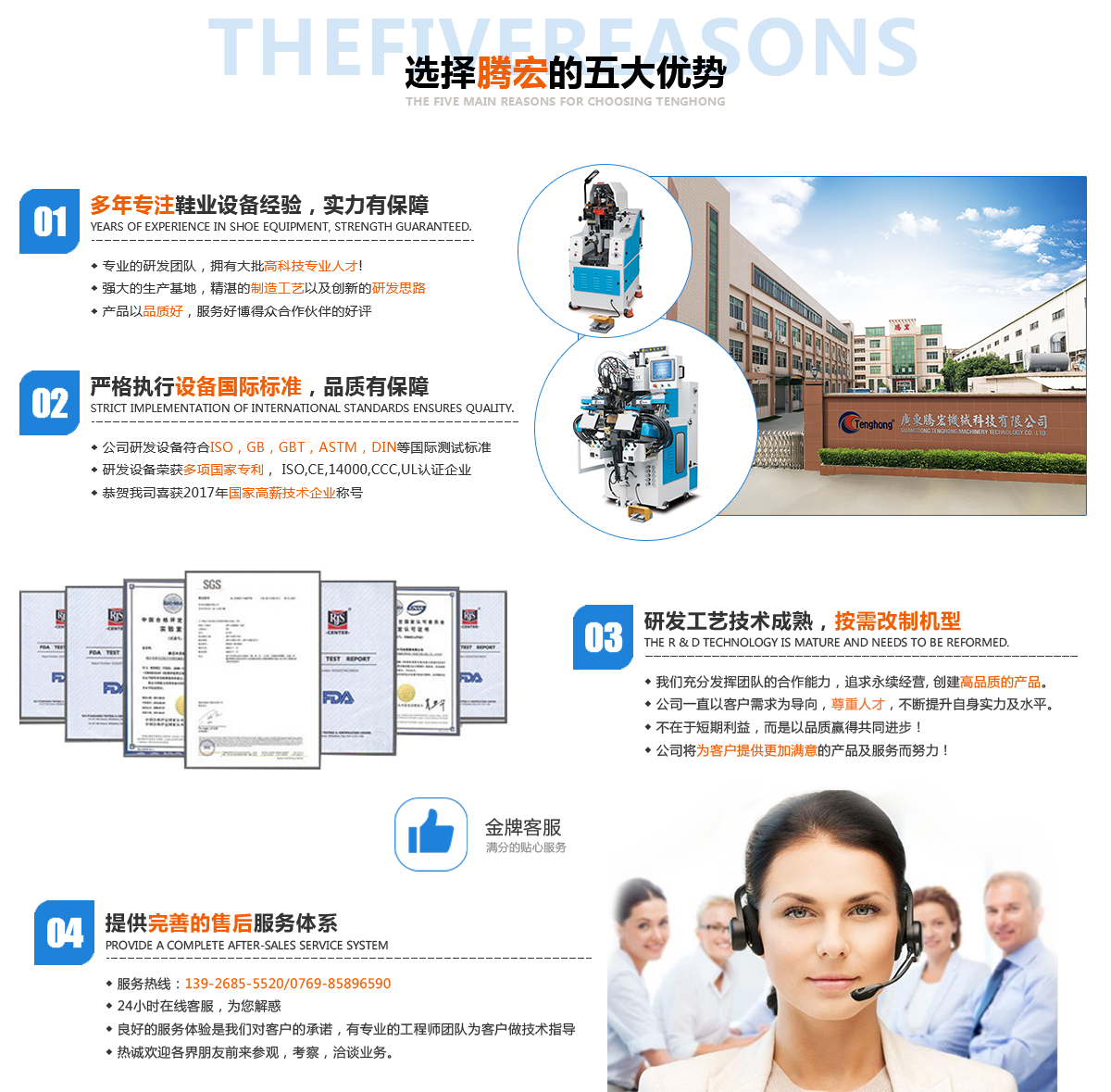 答 采用圓柱滑軌,上刀動作穩(wěn)定。 整型上壓刀采用二段式進(jìn)行,鞋面定型機(jī)操作安全,鞋面中心定位準(zhǔn)確。 …